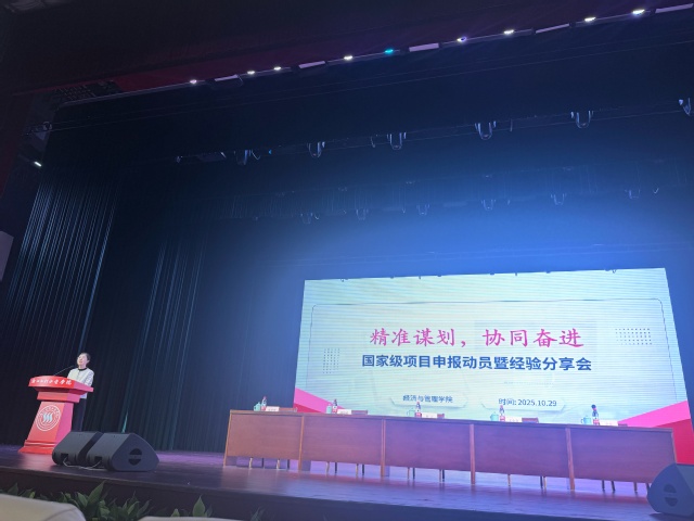 为系统推进高级别科研项目的申报工作,本着“早启动、早论证、早打磨”的原则,10月29日,我院在南浔校区大剧院召开2026年度国家基金项目申报动员会。会议由邓芳芳副院长做动员报告,学院全体领导和教职工参加。