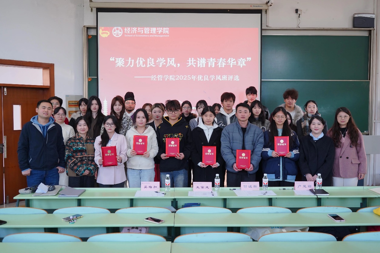 11月19日下午,经济与管理学院2025年"优良学风班"评选活动在钱塘校区实验北楼315阶梯教室顺利开展。经管学院辅导员付诚新、王家凤等老师担任评委,各班学生代表共同见证优良学风班诞生。